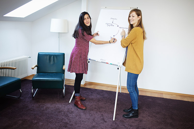 - Beziehungs- und personorientiert: Eng verknüpft mit dem Erwerb von methodischen und therapeutischen Fertigkeiten entwickeln Verhaltenstherapeuten Beziehungskompetenzen und lernen durch intensive Selbsterfahrung ihr professionelles therapeutisches Arbeiten mit der eigenen Person abzustimmen.